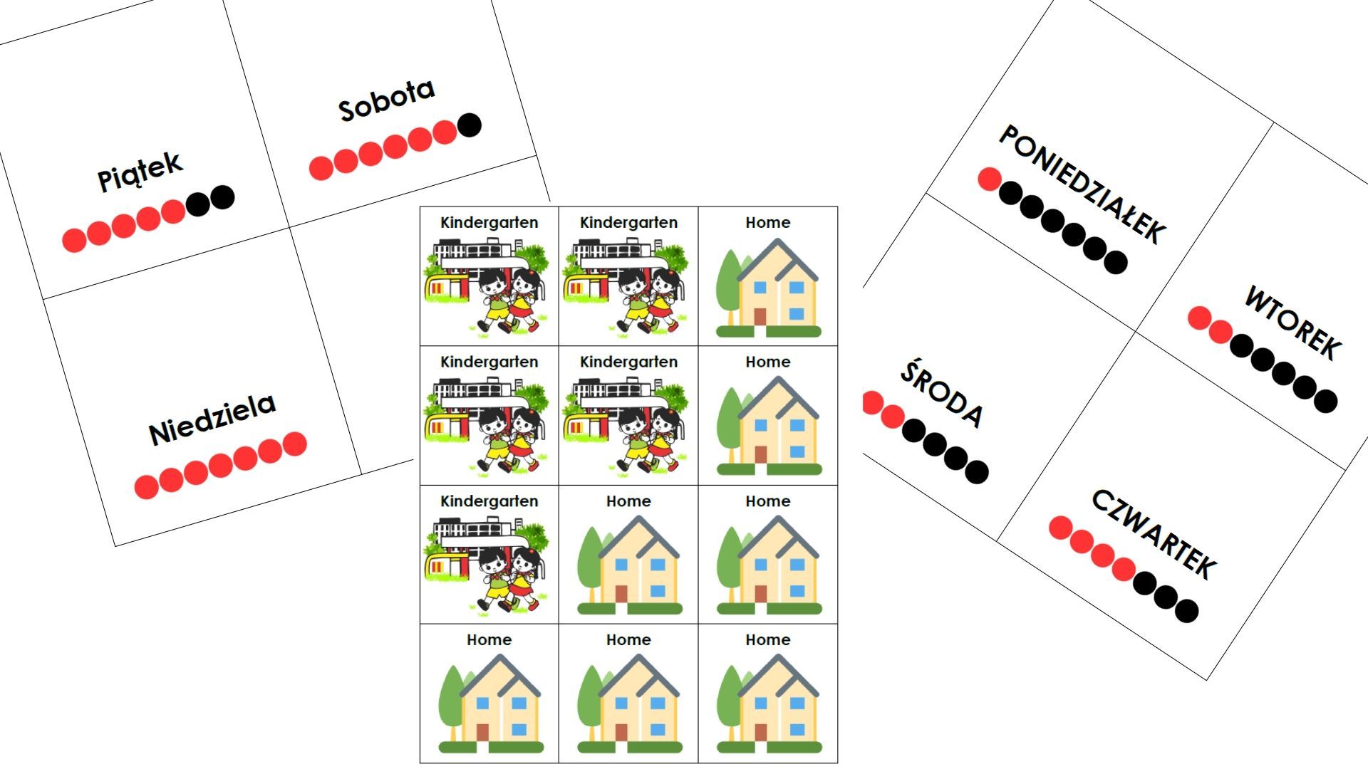 Pora na powrót do innej rzeczywistości - wakacje na finiszu, pora przypomnieć sobie o dniach pracujących i wolnych od pracy. Ostatnie miesiące sprawiły, że dni tygodnia zlały się w jeden ciąg nie do odróżnienia. Żeby pomóc jakoś dzieciom połapać się w upływie czasu przygotowałam taką oto pomoc.