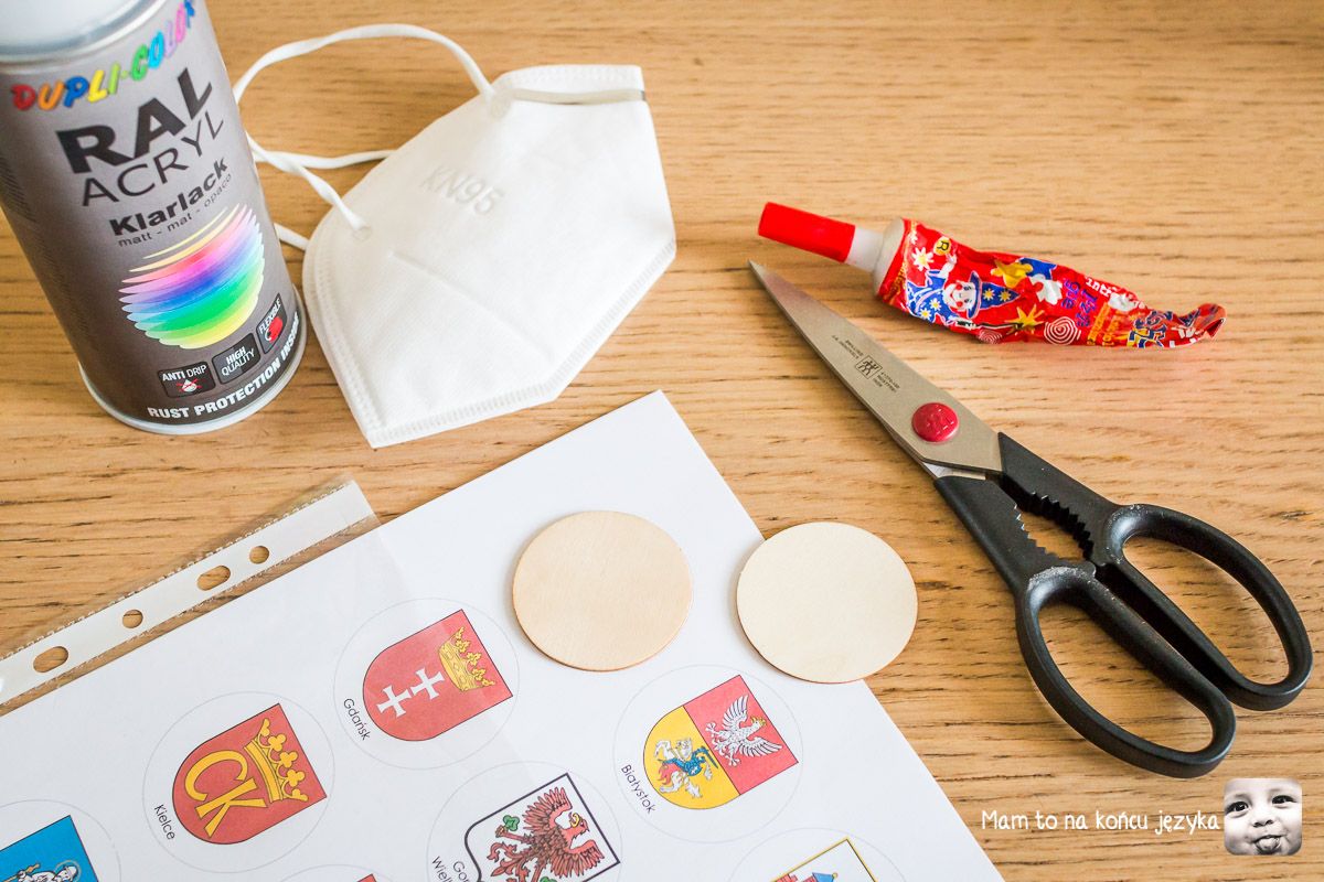 Herby mają średnicę 5 cm i naklejone są na sklejkowe kółeczka. Możecie z nich przygotować sporo różnych pomocy - nawet dla maluchów. Z takich kółeczek można zrobić memory, dopasowywankę, można też użyć ich jako inspiracji do rozmów o heraldyce i symbolach narodowych.