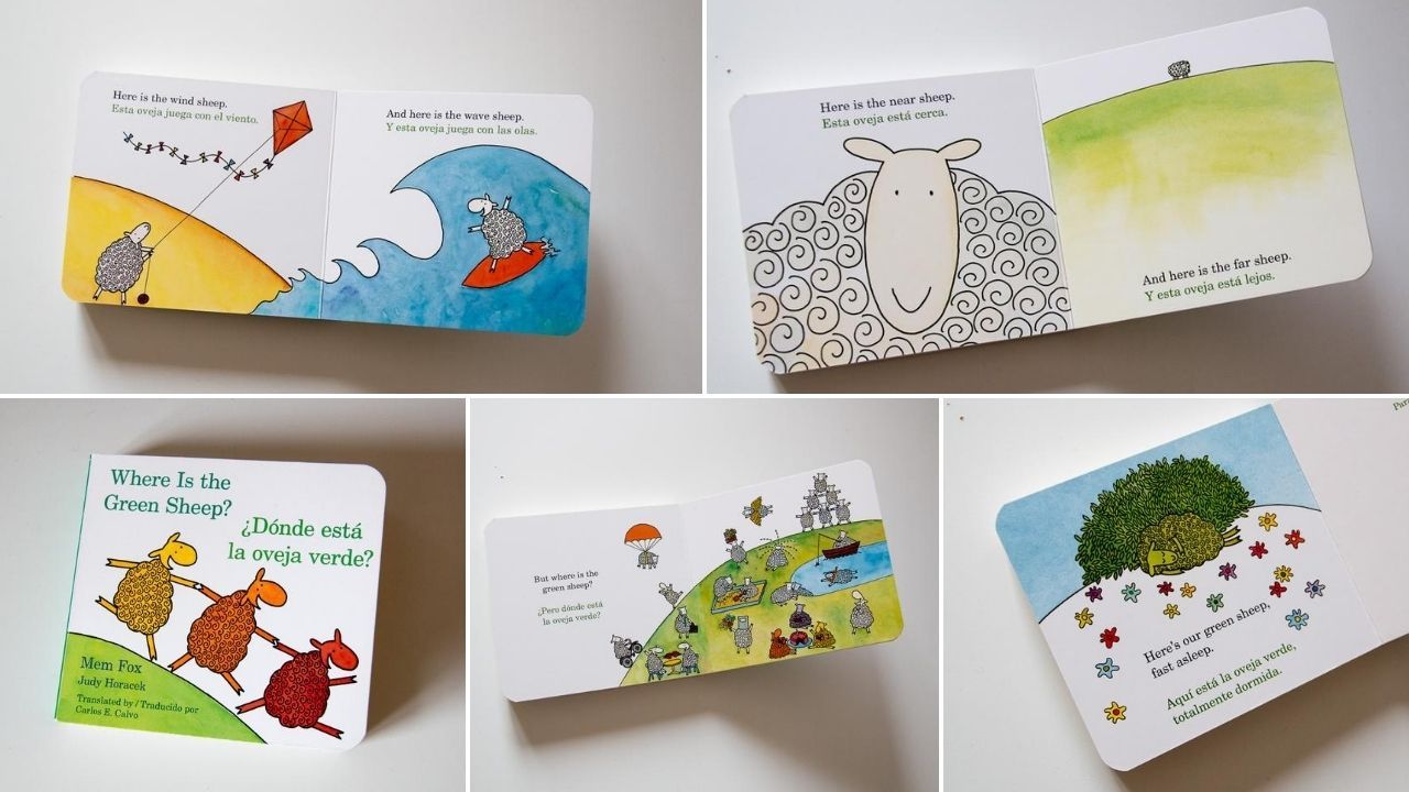 "Where Is the Green Sheep? / Donde esta la oveja verde?" - klasyka angielskiej literatury, elementarne słownictwo, wprowadza przeciwieństwa